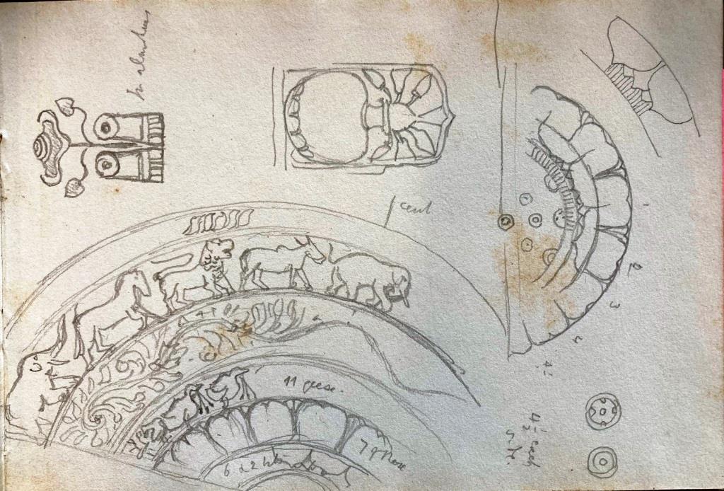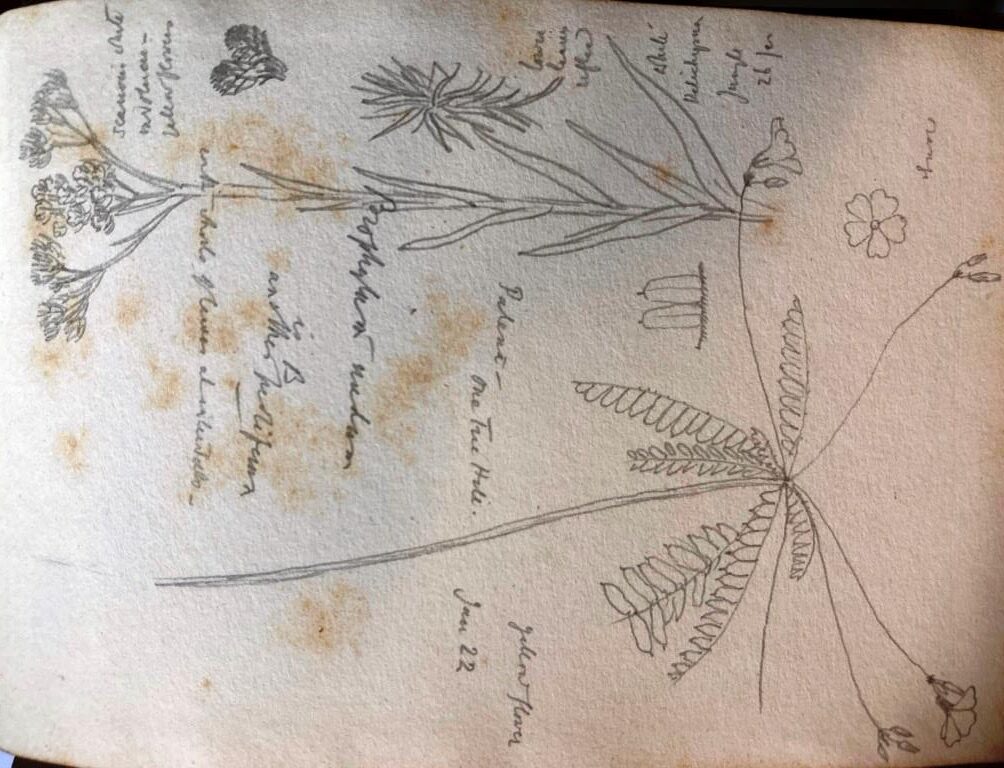 I spent a happy hour with the collection of Clarence Bicknell sketchbooks which we have here at home and found Clarence’s sketchbook from that visit. Eureka! I was able to reply as follows…