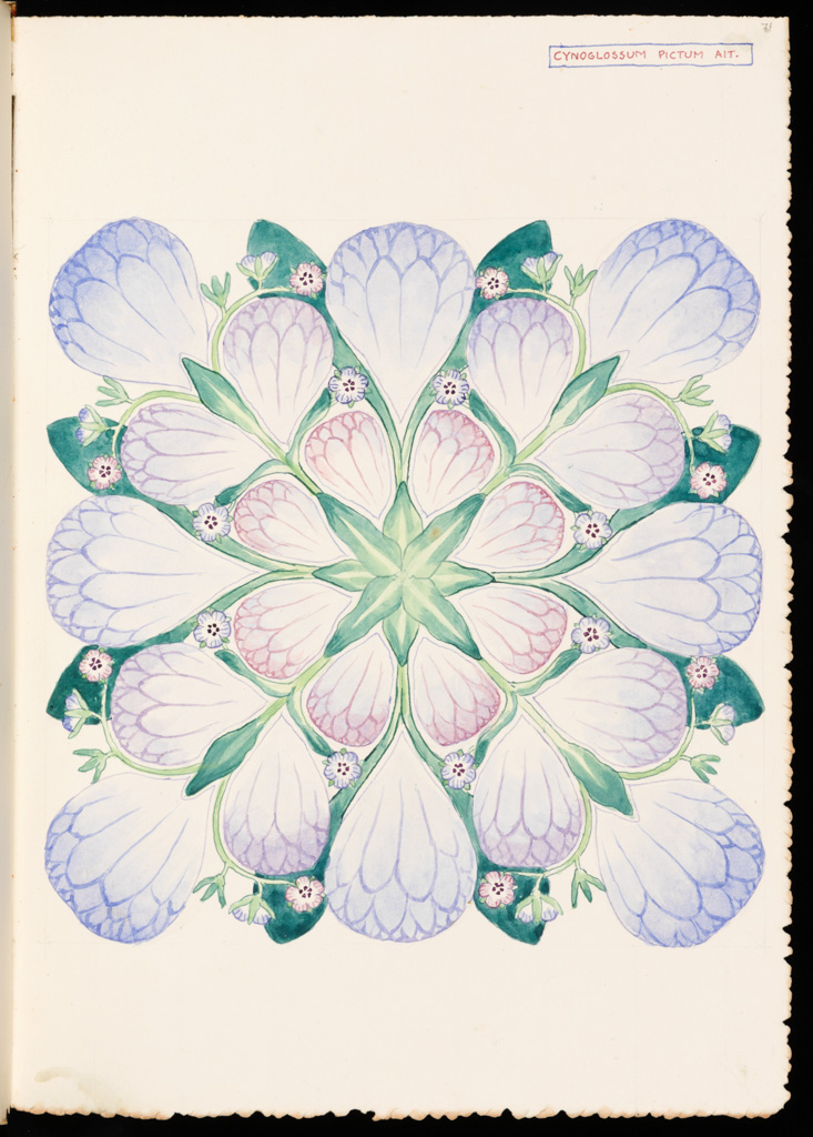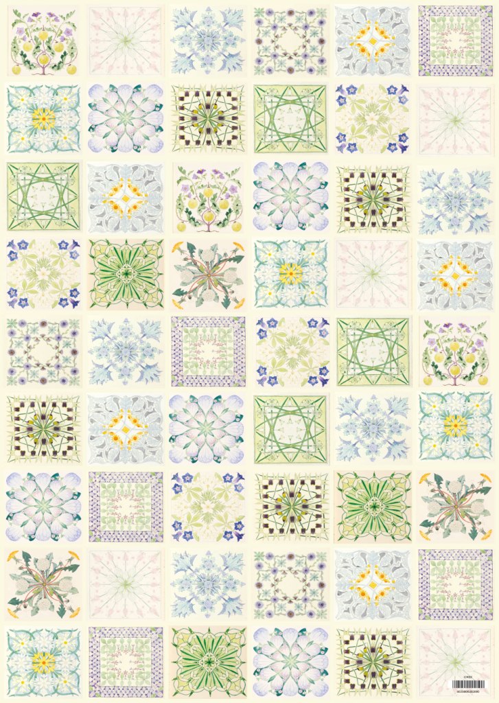 Experts rate Clarence Bicknell’s symmetrical floral patterns alongside the greats of the Arts and Crafts movement like William De Morgan and Walter Crane. “Symmetry is synonymous with beauty in art” https://www.demorgan.org.uk/exhibitions/sublime-symmetry/. They certainly catch the eye in the gallery of images from the albums