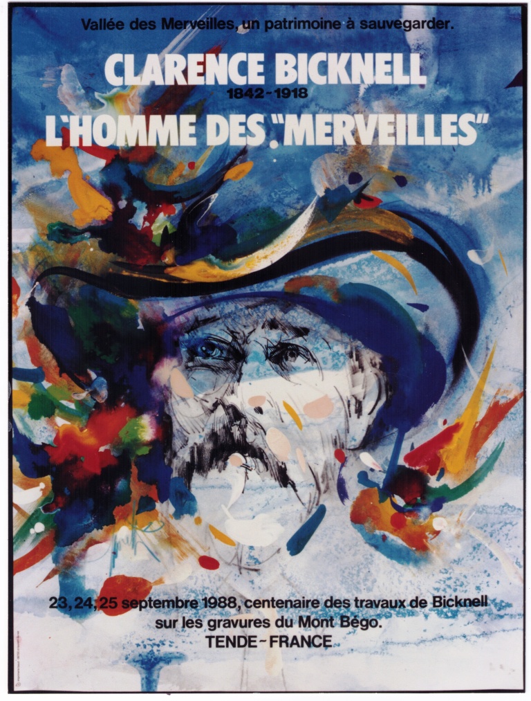 70 years after Clarence Bicknell’s death he was being referred to as L’Homme des Merveilles, the man who discovered the 11,000 rock engravings in the Vallée des Merveilles in the mountains on the border of southeast France and Italy. You can go hiking there (https://provence-alpes-cotedazur.com/en/things-to-do/the-most-beautiful-routes/hiking-alpes-maritimes-vallee-des-merveilles/), stay in on the little hotels in Casterino where Clarence had his mountain house and visit the Musée des Merveilles down the valley in Tende (https://museedesmerveilles.departement06.fr/). This poster was made by this museum on the occasion of our first Bicknell family expedition there and the 70th anniversary of uncle Clarence’s death.