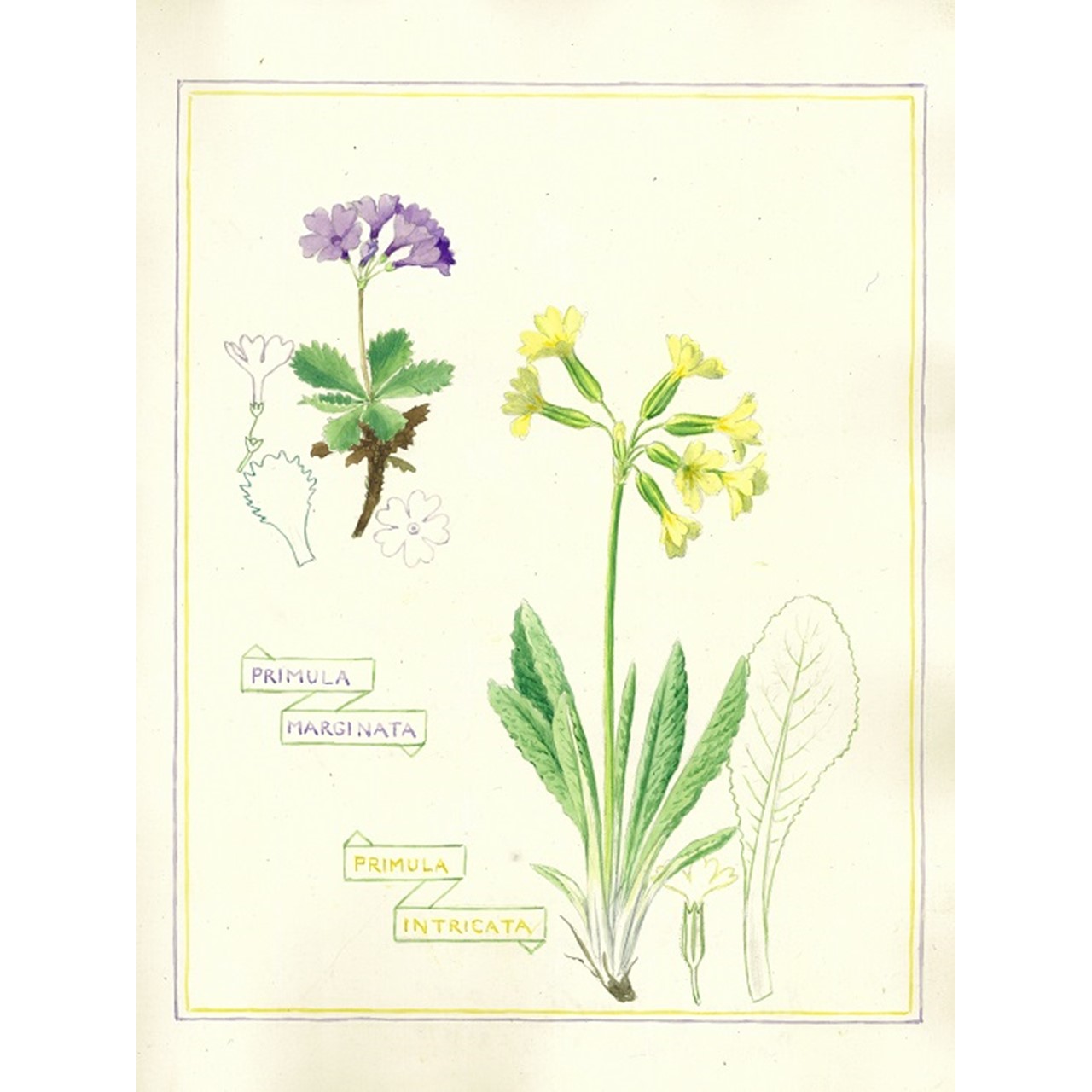 Primula marginata & Intricata. Botanical watercolour print by Clarence Bicknell. Ref. 2025.