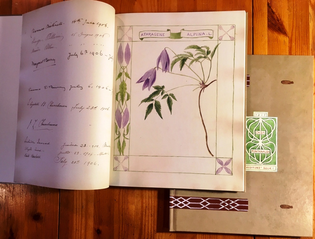 52 pages 265x340mm in portrait format, with embossed cover in simulated-leather card. Weight 1.2 kgs. ISBN 978-1-7880-3796-9 hardback. The original created in one copy only, in 1906, by Clarence Bicknell. Layout by: Lucy Webster, Pentire Designs – Printed by: Indigo Press, Southampton. Published in September 2017 by Matador, an imprint of Troubador Publishing Ltd., 9 Priory Business Park, Wistow Road, Kibworth Beauchamp, Leicester LE8 0RX, United Kingdom. www.troubador.co.uk/matador