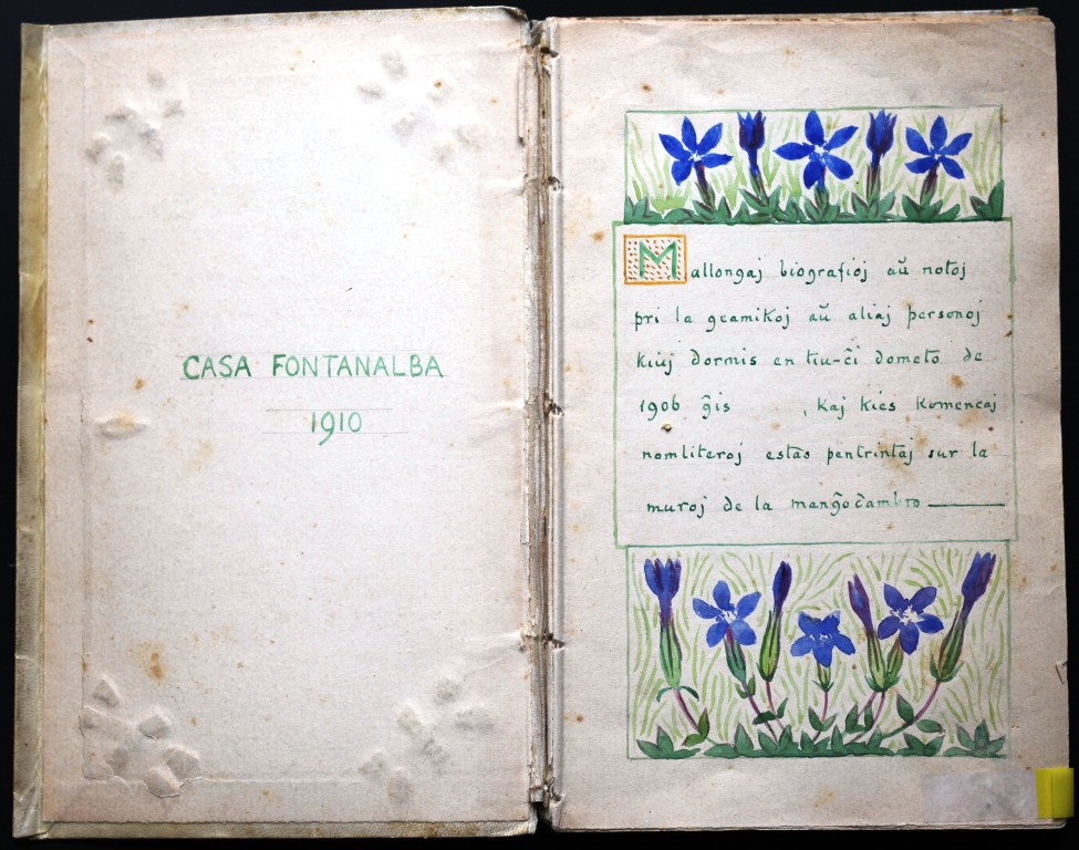 The frontispiece of Clarence’s Book of Guests in Esperanto
